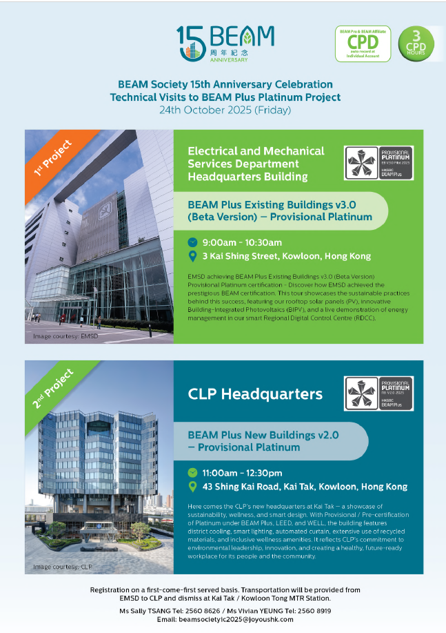 Join us on 23rd October 2025 (Thursday) with special discount to meet visionaries and gain actionable insights, equip yourself with new perspectives and tools to drive Hong Kong’s sustainable building future. Don't miss out on this fantastic chance to be part of something truly special, learn more at https://www.beamsociety.org.hk/en/About-Us/News-and-Updates/BEAM-Society-International-Conference-2025 and secure your spot by registering now at https://www.popticket.hk/en/event/beam-society-international-conference-2025.