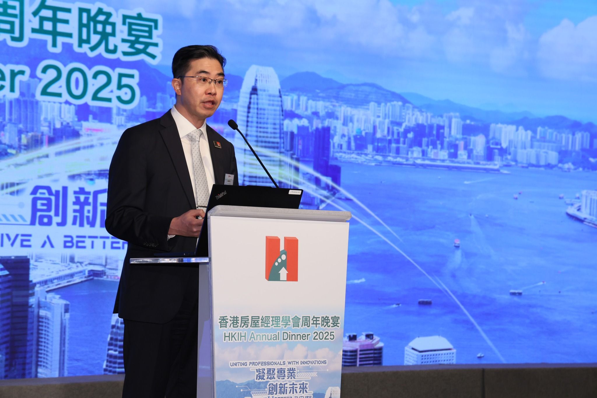 學會會長游錦輝先生於歡迎致辭中感謝各界嘉賓及會員的長期支持,並回顧學會過去一年在政策倡議及專業推動上的不懈努力。他強調,HKIH將繼續積極發揮專業影響力,就影響香港社會的重要政策提出意見與建議。