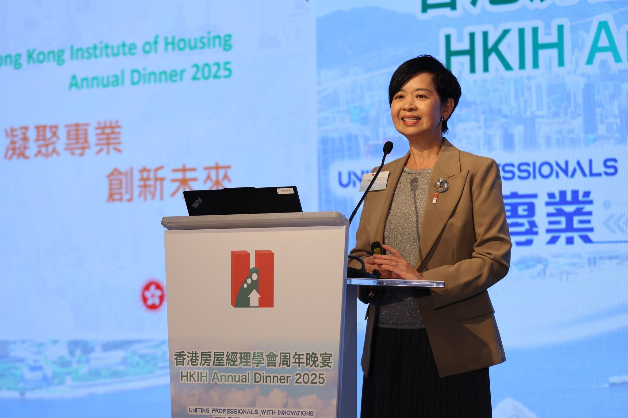 香港房屋經理學會2025年度晚宴圓滿舉行,場面盛大、氣氛熱烈!本會非常榮幸邀得房屋局局長何永賢女士, JP擔任晚宴主禮嘉賓,為盛會揭開序幕並發表激勵人心的致辭,勉勵業界繼續為香港的可持續社區發展作出貢獻。