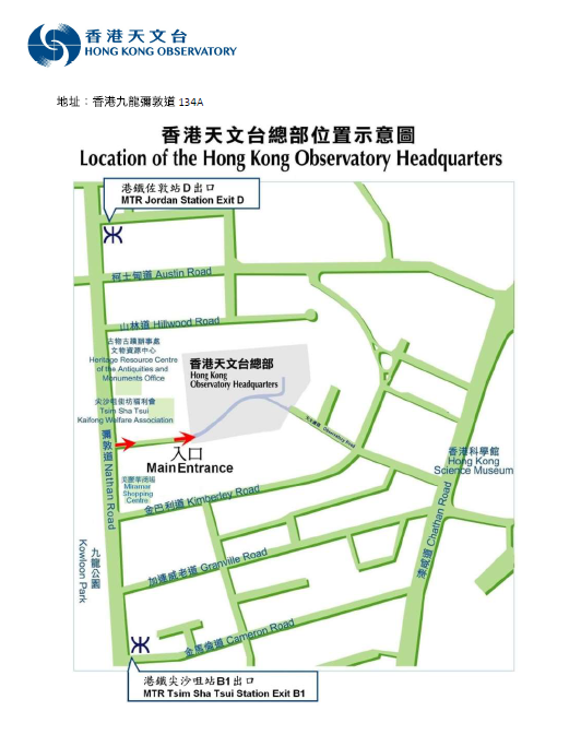 | Venue | Hong Kong Observatory 香港天文台 134A Nathan Road, Kowloon (Please refer to below map) |