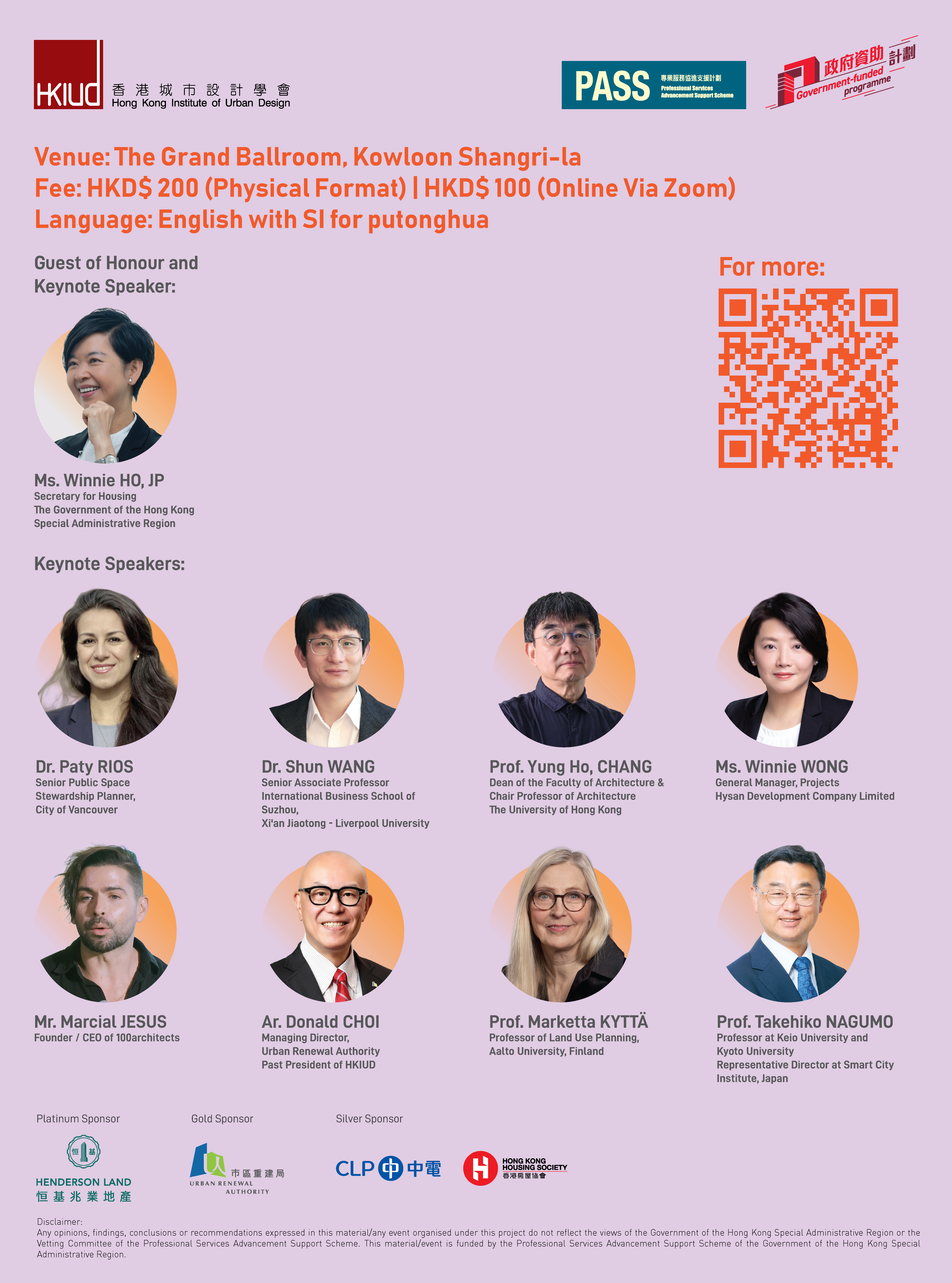 Through keynote speeches and panel discussions, international keynote speakers and local panelists will share best practices, case studies, and visionary ideas illustrating how urban design can transform cities—especially Hong Kong—into happier, healthier, and more sustainable places to live, to work and thrive. By prioritizing well-being in urban design, we can cultivate communities that not only survive but also thrive, ultimately leading to a more joyful urban experience for all.