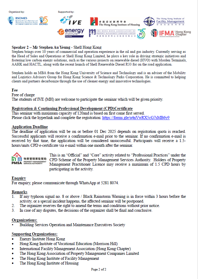 RegardsSecretariatThe Hong Kong Institute of Housing