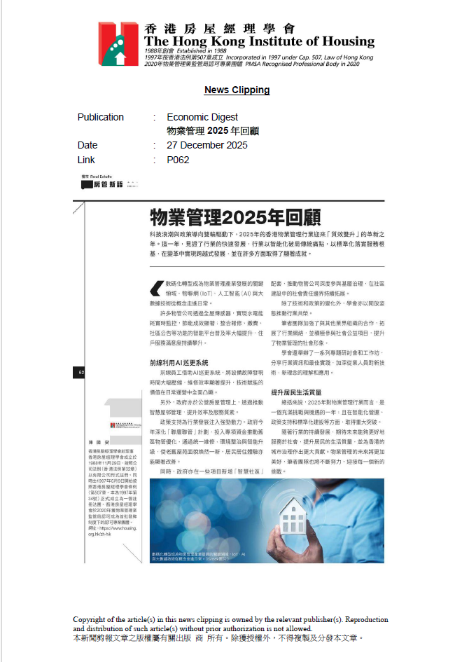香港房屋經理學會倡"聯廈聯管"擴展2025.10.14